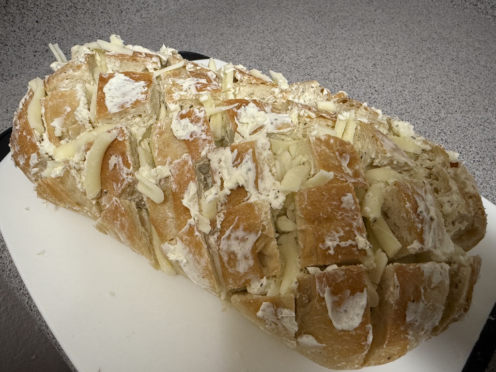 This year, I didn’t feel like cooking a whole lot of food. So I mostly opted for prepackaged snacks and things I can make in the air fryer. If figured that would keep it festive today and through the weekend. However, I did want to make one really delicious dish, so I used this recipe to make garlic cheese crack bread. I just have to let you know it is absolutely divine.