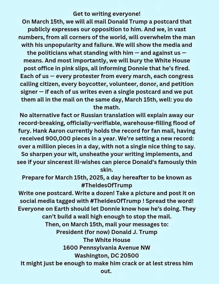 Anyway, I saw this post going around about the Ides of Trump, a postcard campaign to bombard the White House with postcards expressing how we really feel – all of them dropped in the mail on the same day, March 15. Of course I instantly thought of my vast unused collection, gathering dust in a drawer. Of course I will send one!!